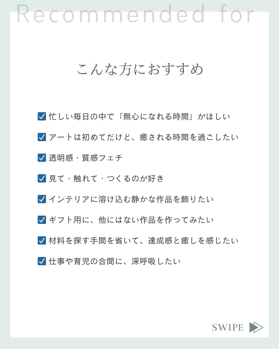 ☑︎ 仕事や育児の合間に、自分時間を持ちたい方
