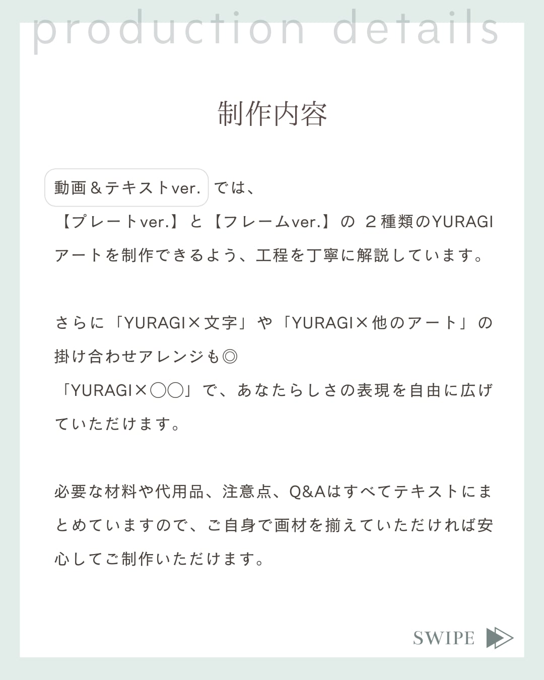 YURAGIアートの技法を、どなたでも再現できるよう、【動画解説+テキスト】をご用意しました。